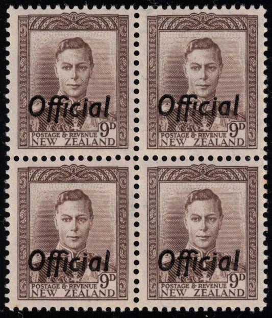 1947 9d GVI brown-sepia, block of 4.